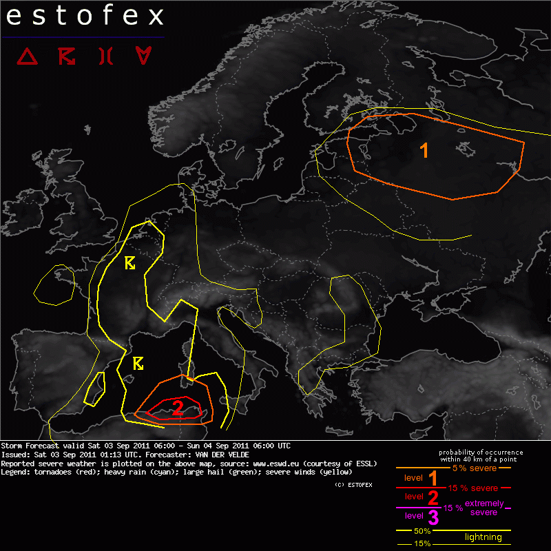 Valid: Sat 03 Sep 2011 06:00 to Sun 04 Sep 2011 06:00 UTC