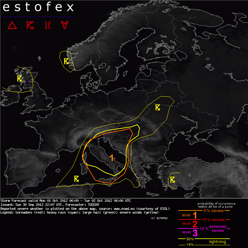 low-end tornado risk.Valid: Mon 01 Oct 2012 06:00 to Tue 02 Oct 2012 06:00 UTC
