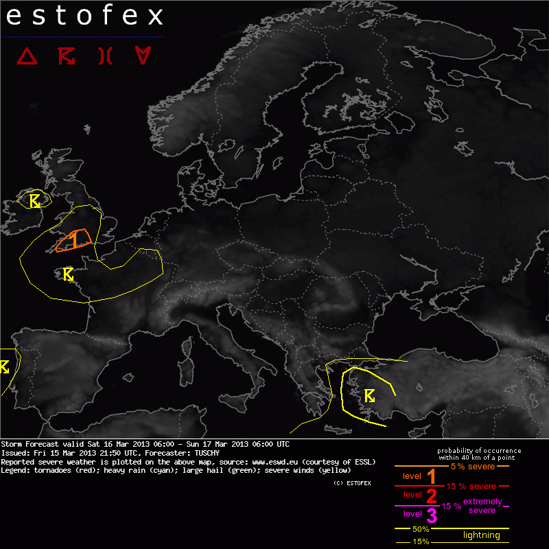 Valid: Sat 16 Mar 2013 06:00 to Sun 17 Mar 2013 06:00 UTC