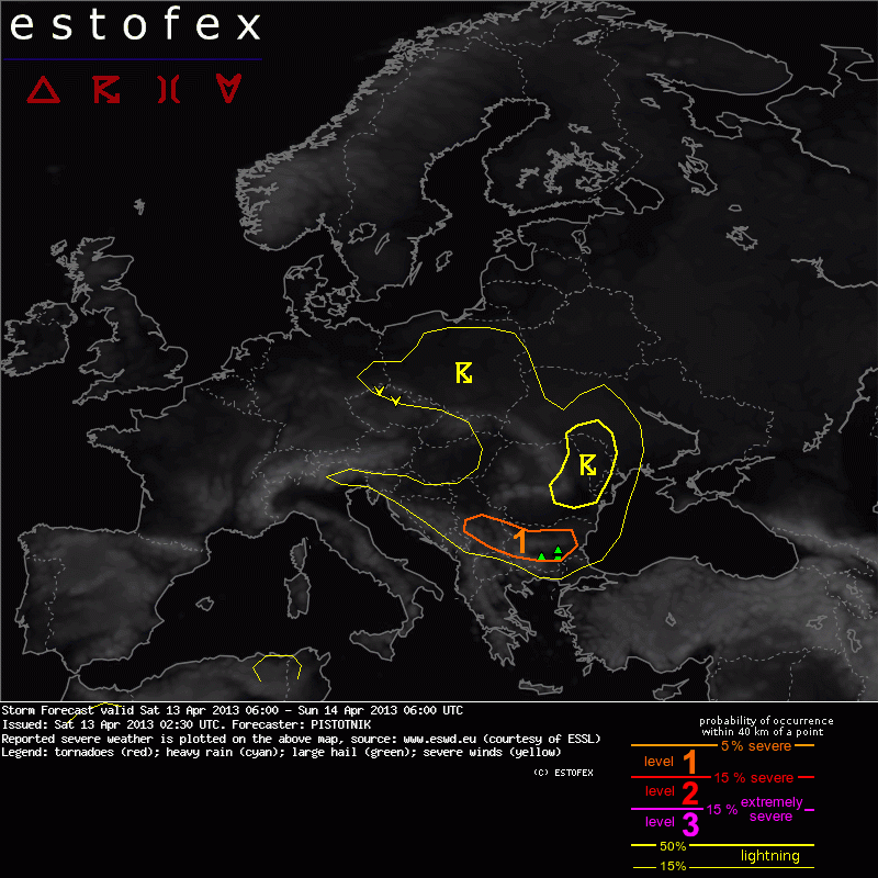 Valid: Sat 13 Apr 2013 06:00 to Sun 14 Apr 2013 06:00 UTC