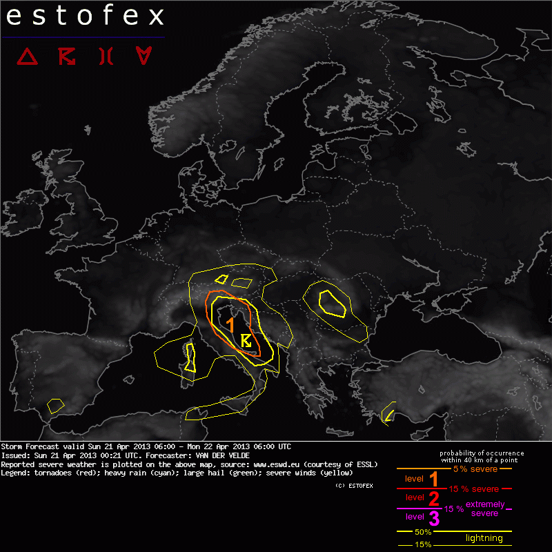 Valid: Sun 21 Apr 2013 06:00 to Mon 22 Apr 2013 06:00 UTC