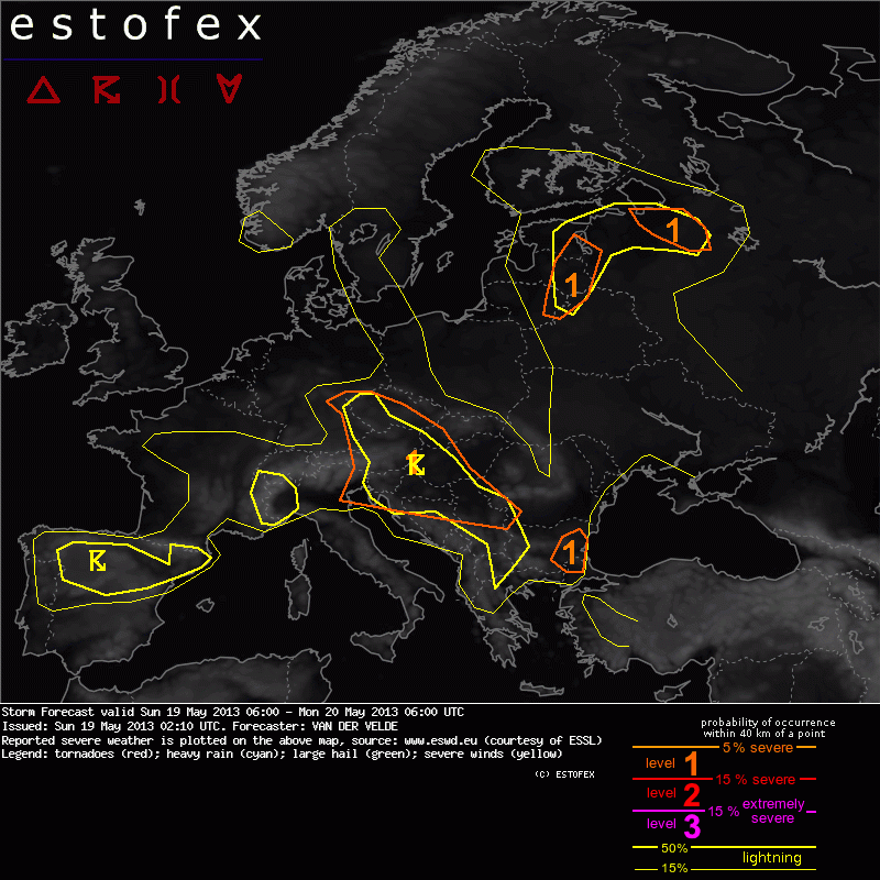 Valid: Sun 19 May 2013 06:00 to Mon 20 May 2013 06:00 UTC