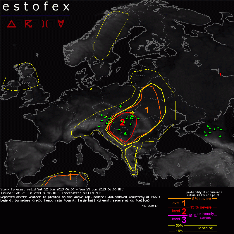 Valid: Sat 22 Jun 2013 06:00 to Sun 23 Jun 2013 06:00 UTC