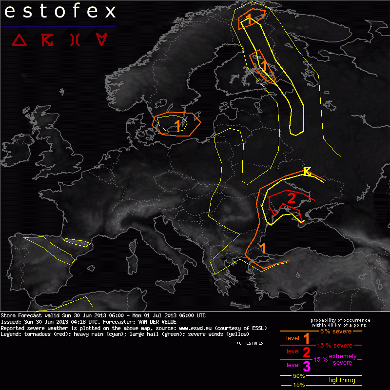 Valid: Sun 30 Jun 2013 06:00 to Mon 01 Jul 2013 06:00 UTC