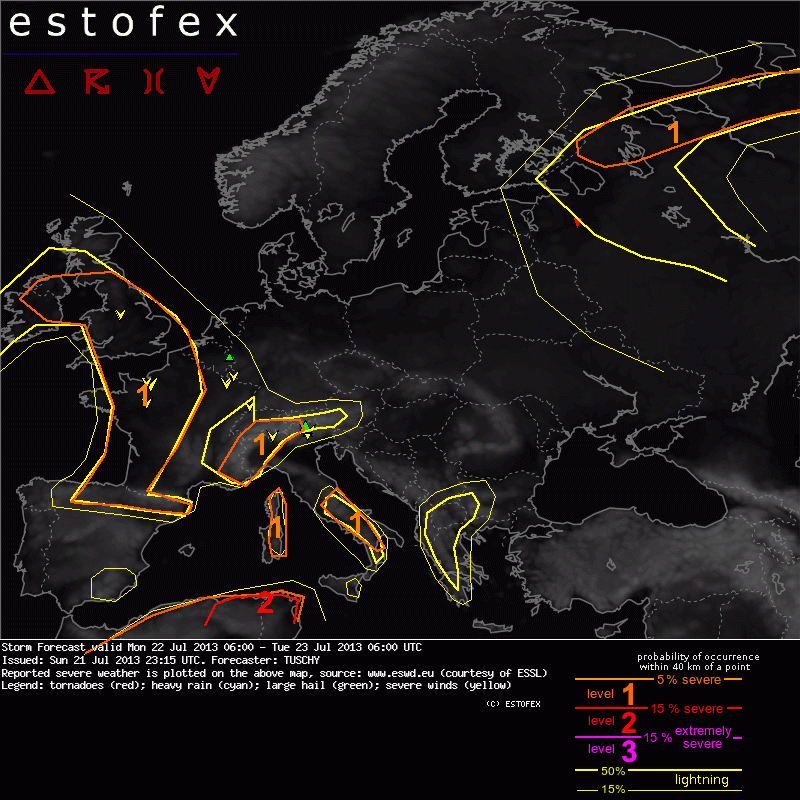 Valid: Mon 22 Jul 2013 06:00 to Tue 23 Jul 2013 06:00 UTC