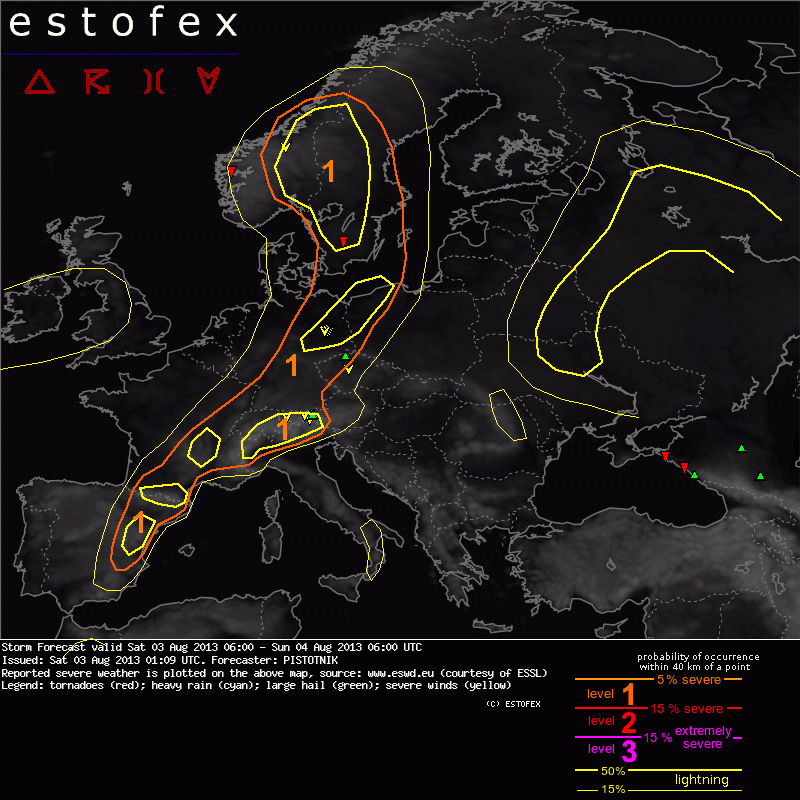 Valid: Sat 03 Aug 2013 06:00 to Sun 04 Aug 2013 06:00 UTC