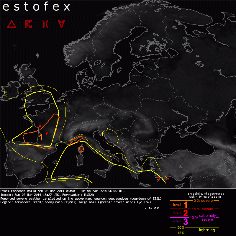 Valid: Mon 03 Mar 2014 06:00 to Tue 04 Mar 2014 06:00 UTC