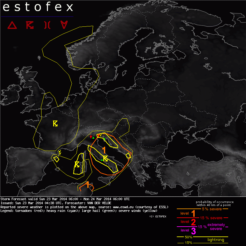 Valid: Sun 23 Mar 2014 06:00 to Mon 24 Mar 2014 06:00 UTC