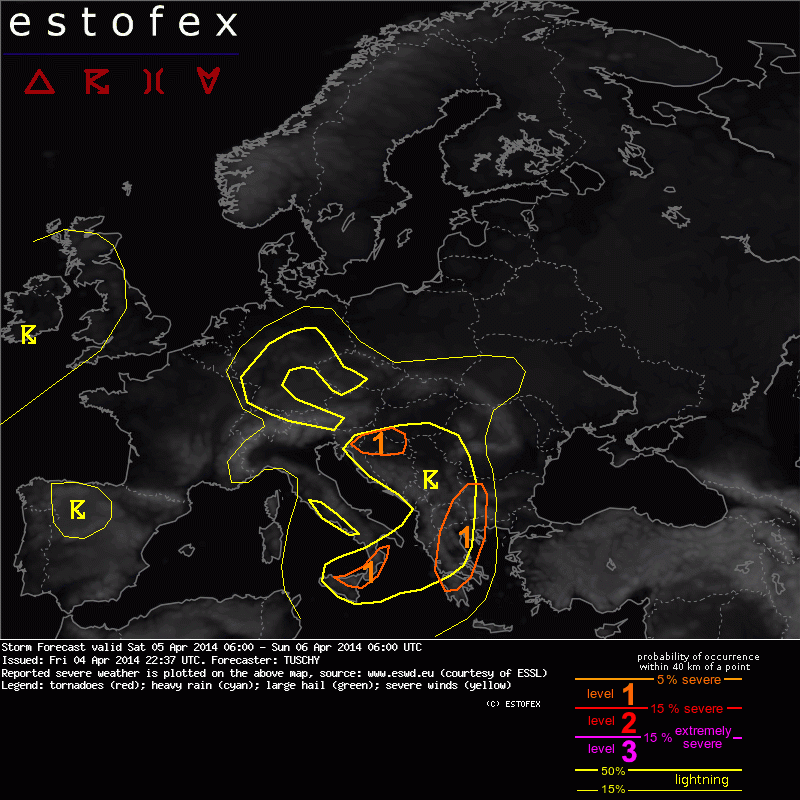 Valid: Sat 05 Apr 2014 06:00 to Sun 06 Apr 2014 06:00 UTC