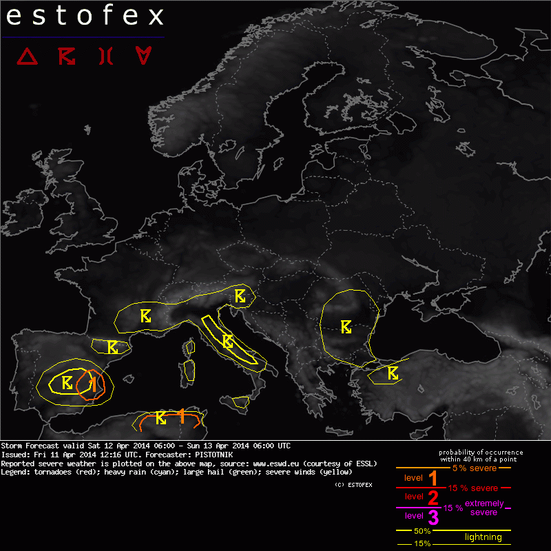 Valid: Sat 12 Apr 2014 06:00 to Sun 13 Apr 2014 06:00 UTC