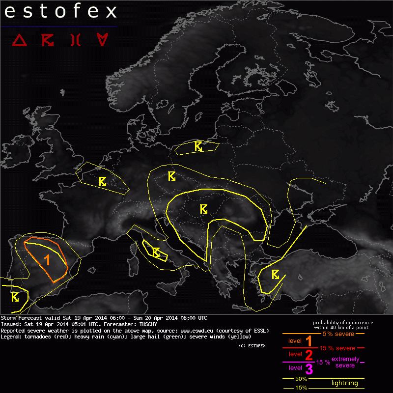 Valid: Sat 19 Apr 2014 06:00 to Sun 20 Apr 2014 06:00 UTC