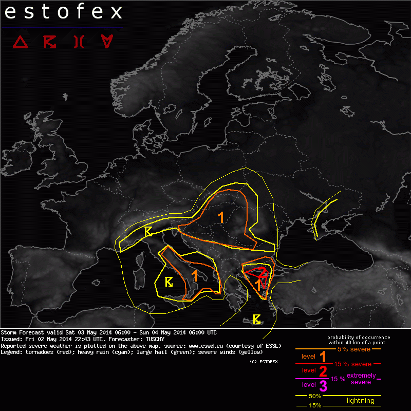 Valid: Sat 03 May 2014 06:00 to Sun 04 May 2014 06:00 UTC