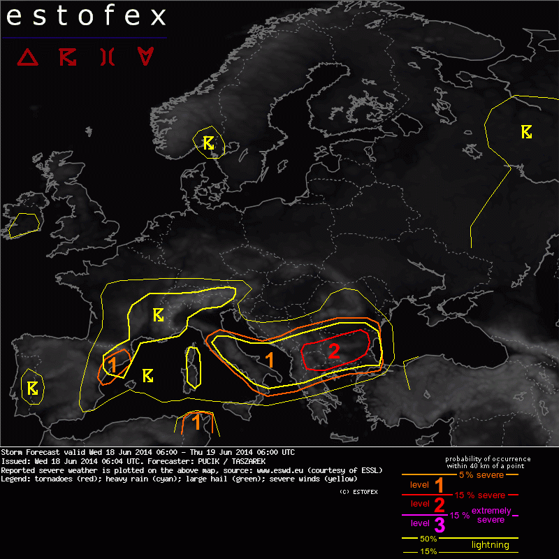 Valid: Wed 18 Jun 2014 06:00 to Thu 19 Jun 2014 06:00 UTC