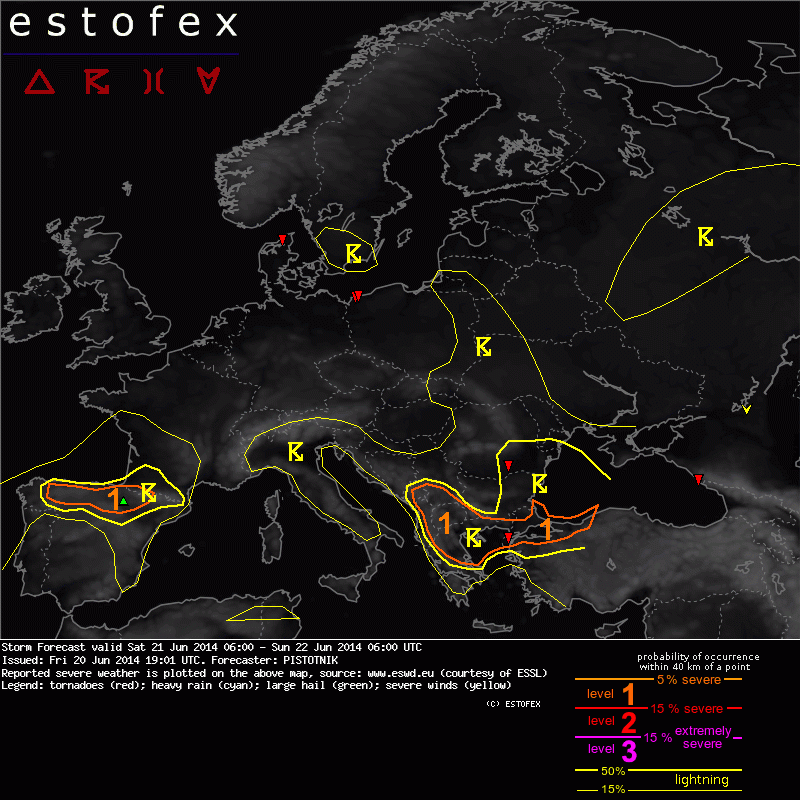 Valid: Sat 21 Jun 2014 06:00 to Sun 22 Jun 2014 06:00 UTC