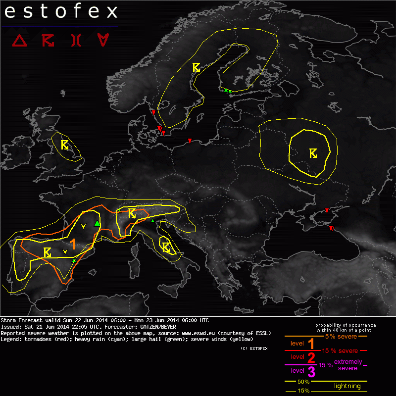 Valid: Sun 22 Jun 2014 06:00 to Mon 23 Jun 2014 06:00 UTC