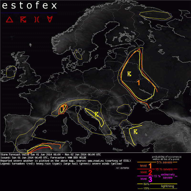 Valid: Sun 01 Jun 2014 06:00 to Mon 02 Jun 2014 06:00 UTC