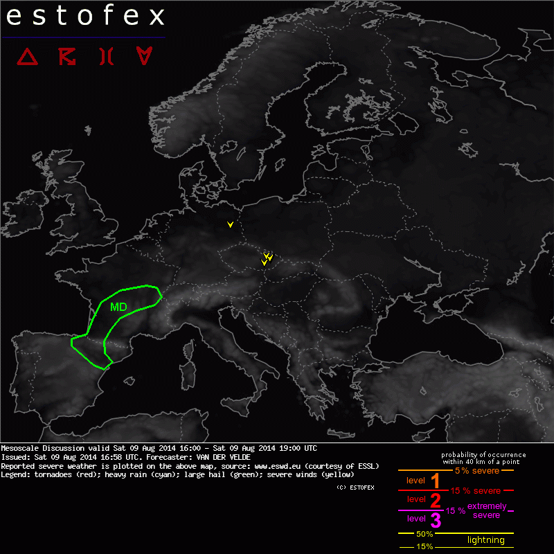 Valid: Sat 09 Aug 2014 16:00 to Sat 09 Aug 2014 19:00 UTC