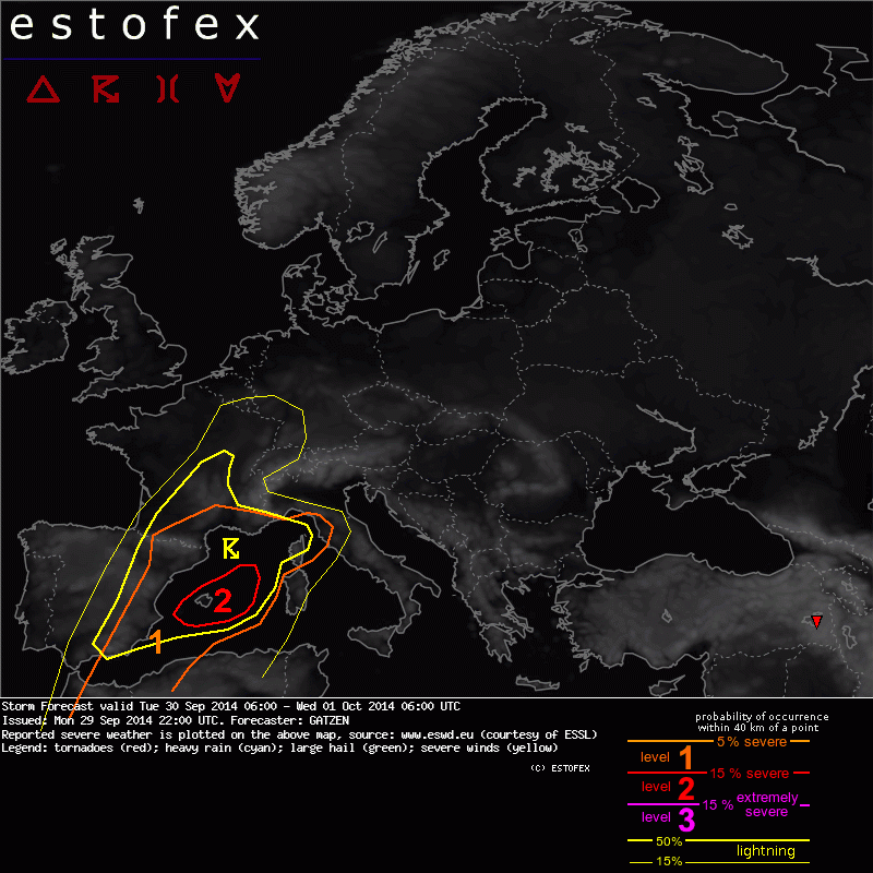 Valid: Tue 30 Sep 2014 06:00 to Wed 01 Oct 2014 06:00 UTC
