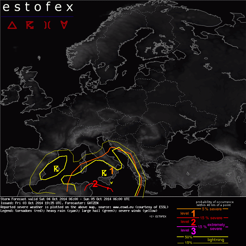 Valid: Sat 04 Oct 2014 06:00 to Sun 05 Oct 2014 06:00 UTC