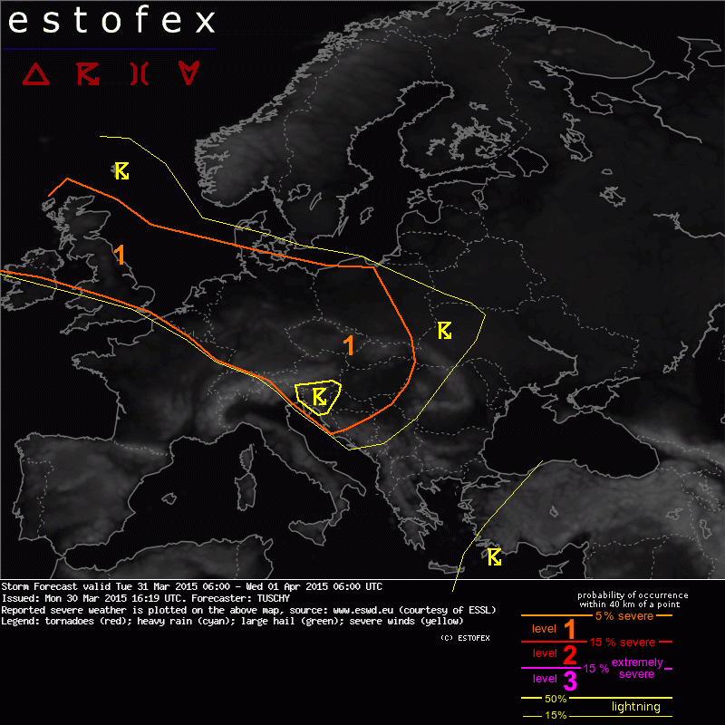 Valid: Tue 31 Mar 2015 06:00 to Wed 01 Apr 2015 06:00 UTC