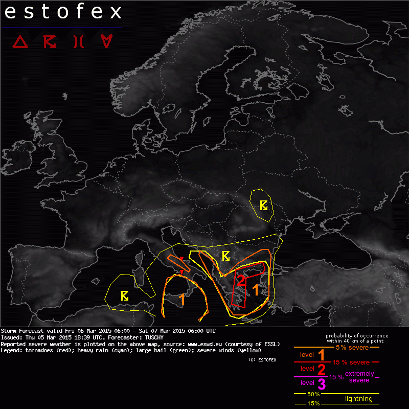 Valid: Fri 06 Mar 2015 06:00 to Sat 07 Mar 2015 06:00 UTC