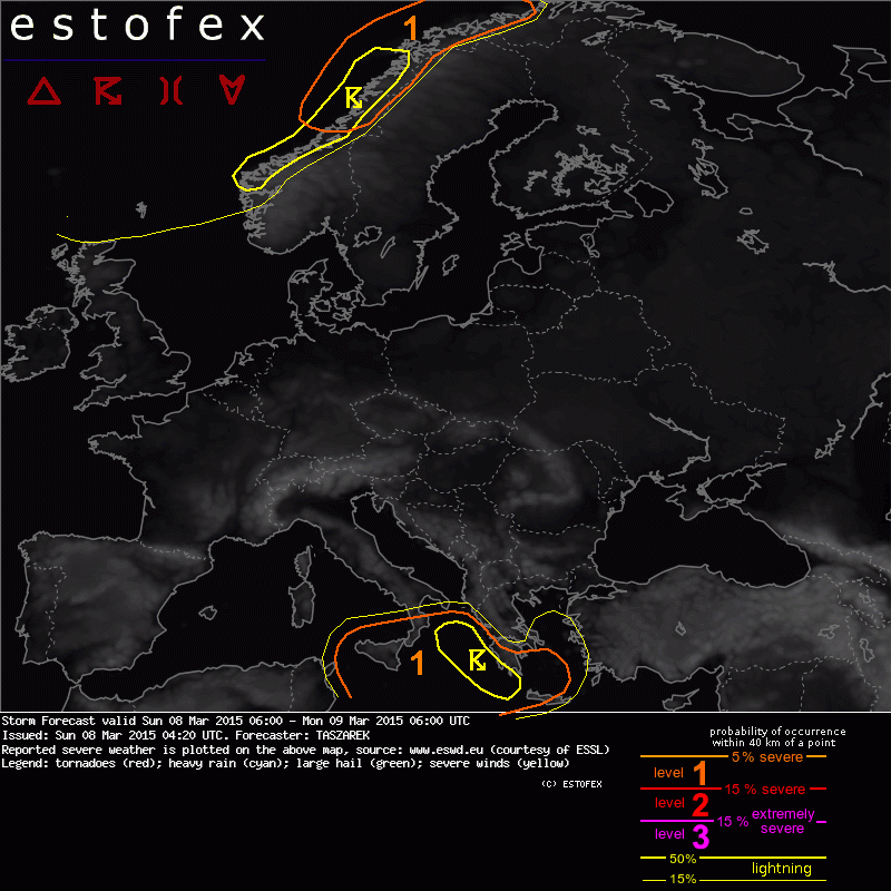 Valid: Sun 08 Mar 2015 06:00 to Mon 09 Mar 2015 06:00 UTC