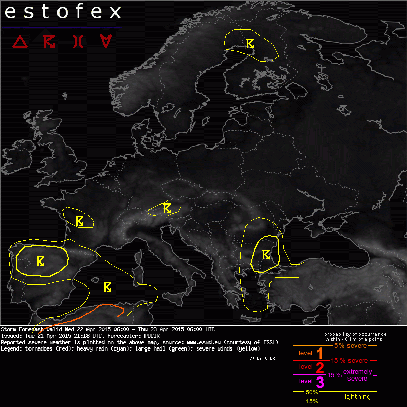 Valid: Wed 22 Apr 2015 06:00 to Thu 23 Apr 2015 06:00 UTC
