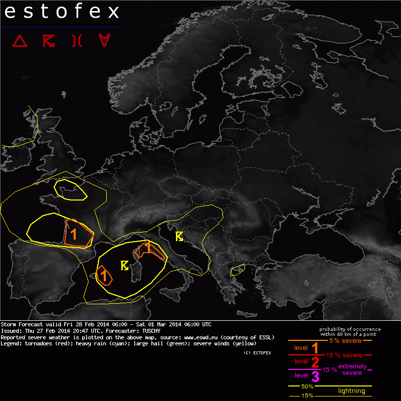 Valid: Fri 28 Feb 2014 06:00 to Sat 01 Mar 2014 06:00 UTC